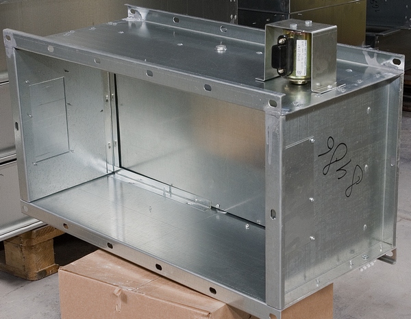 - канальный (2 присоединительных фланца; электропривод снаружи, электромагнит снаружи или внутри) - прямоугольного сечения (глубина корпуса - 300мм) - круглого сечения (глубина корпуса - 200-415мм, диаметр - не более 710мм);