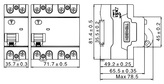 Номинальное время отключения (TΔn), s | ≤ 0.1 от 0.1 до 0.5 (тип S) |