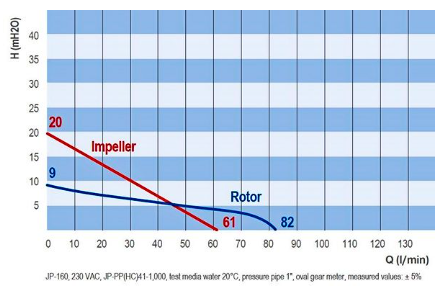 Высота подачи (напор), макс. | 5 м (рабочее колесо - ротор) 10 м (рабочее колесо - импеллер) |