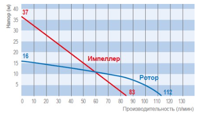 - Высота подачи (макс.): до 16 м (Ротор); до 37 м (Импеллер)