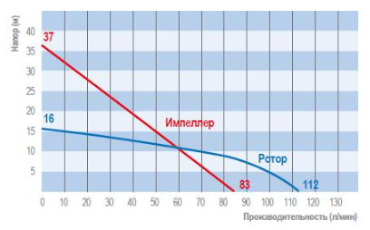 - Высота подачи (макс.): 16 м (ротор) ; 37 м (импеллер)