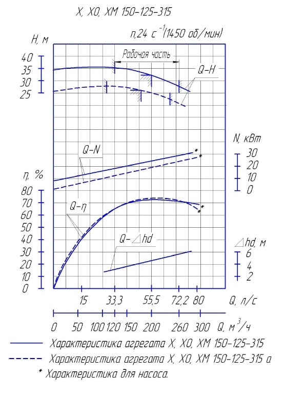Центробежный химический насос Х 150-125-315К-СД предназначен для перекачивания химически активной рабочей жидкости, а также нейтральной жидкости с характеристиками: