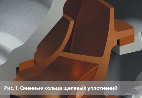 - Сменные кольца щелевых уплотнений выполнены из современных износостойких материалов со специальными антизадирными покрытиями, что снижает динамические нагрузки на ротор и опоры насоса, увеличивая срок службы подшипников и уплотнений (Рис. 1).