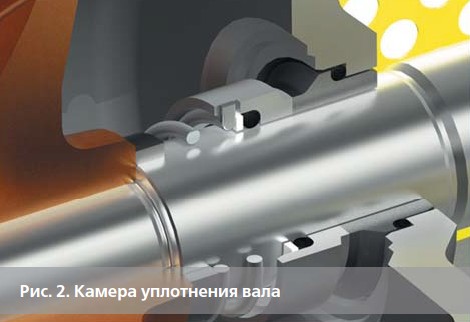 - Камера уплотнения допускает установку как сальниковых, так и одинарных торцовых уплотнений, в том числе картриджного типа (Рис. 2).