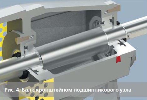 - Вал жёсткой конструкции с увеличенной прочностью на изгиб обеспечивает минимальные значения вибрации и биения для увеличения срока службы уплотнения и подшипников (Рис. 4).