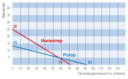 Напор | 13 м (ротор) ; 25 м (импеллер) |