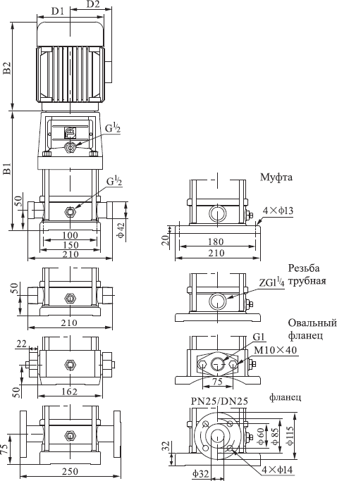 ЦВС2-25 | 25 | 3 | 225 | 219 | 206 | 190 | 173 | 152 | 129 | 107 | |