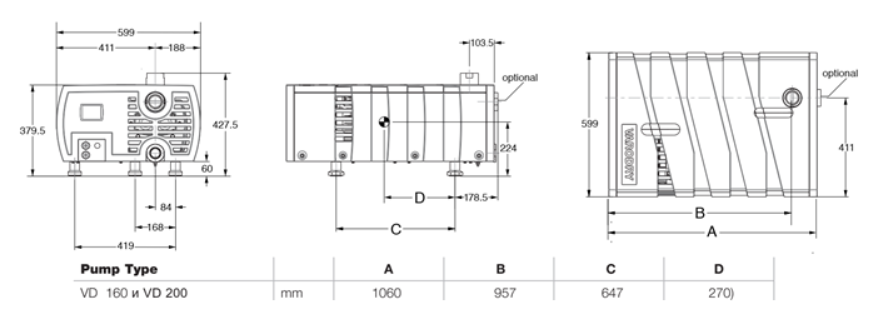 - Работа с различными средами: VARODRY VD 200 эффективно справляется с пыльными средами и средами, содержащими капельную влагу, а также подходит для циклической откачки и быстрого срыва атмосферы.