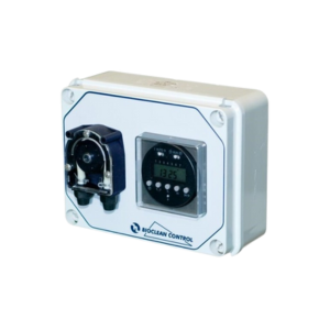 - BioClean Control PER - в этой версии в блоке дозирования установлен перистальтический насос серии F PER, который включается/выключается по цифровому таймеру, регулирование производительности не предусмотрено. Максимальна величина расхода 2,2 л/час.