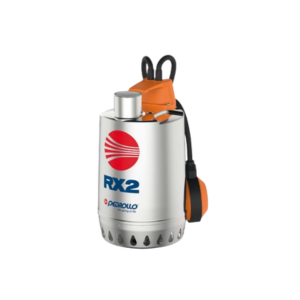 Погружные насосы Pedrollo RX представляют собой классическую версию с открытым рабочим колесом и стандартным поплавком, который отключает насос при уровне воды 14 мм (25 мм для RX 4, RX 5). Максимальный размер частиц для этих насосов составляет 10 мм.