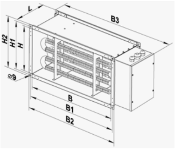 Электрический воздухонагреватель ВЕНТС НК 500х300-21,0-3 предназначен для монтажа в прямоугольные вентиляционные каналы.