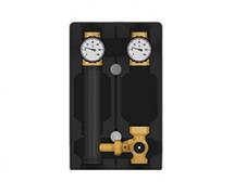Насосная группа со смесителем представляет собой готовый комплект арматуры и насоса (опционально), предназначенный для выполнения функции циркуляции теплоносителя в контуре, c возможностью дополнительной регулировки температуры жидкости, путём подмеса теплоносителя из обратной линии. Комплект рассчитан на работу при максимальном давлении 10 бар и температуре теплоносителя 110 °С. Подключение к контуру нагревателя(котла), 1 ½” наружная резьба, находится снизу. Подключение к контуру потребителя , 1” внутренняя резьба, располагается сверху.