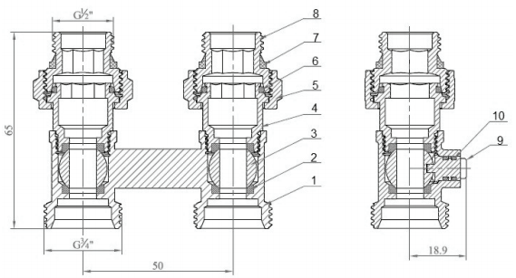 Технические характеристики узла нижнего подключения для двухтрубной системы отопления