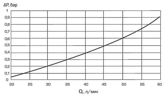Диаграмма гидравлического сопротивления углового запорно-присоединительного узла