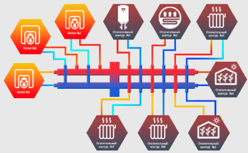- Семь автономных контура с функцией балансировки — равномерное распределение тепловой энергии между потребителями