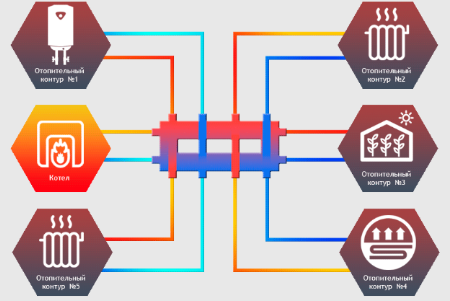 Устройство эффективно распределяет тепловую энергию между несколькими контурами, снижает нагрузку на насосы и способствует стабильной и сбалансированной работе всей системы.