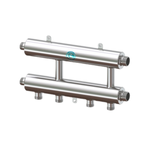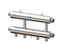 Узел монтируется в горизонтальном положении и обеспечивает эффективное распределение теплоносителя между несколькими потребителями в системе.