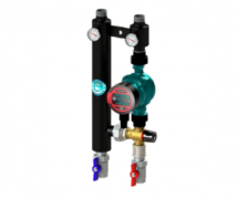 Основной элемент группы — термостатический смесительный клапан, который автоматически регулирует температуру подачи, предотвращая перегрев и способствуя равномерному распределению тепла в системе.
