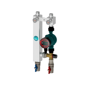 В состав группы входят трёхходовой смесительный клапан и циркуляционный насос, что позволяет точно поддерживать заданные температурные параметры в отопительном контуре.