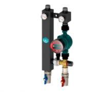 В состав группы входят трёхходовой смесительный клапан и циркуляционный насос, что позволяет точно поддерживать заданные температурные параметры в отопительном контуре.
