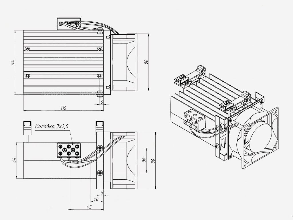 - Удобство установки. Наши тепловентиляторы устанавливаются очень легко и быстро при помощи специальных креплений для DIN 35 мм.