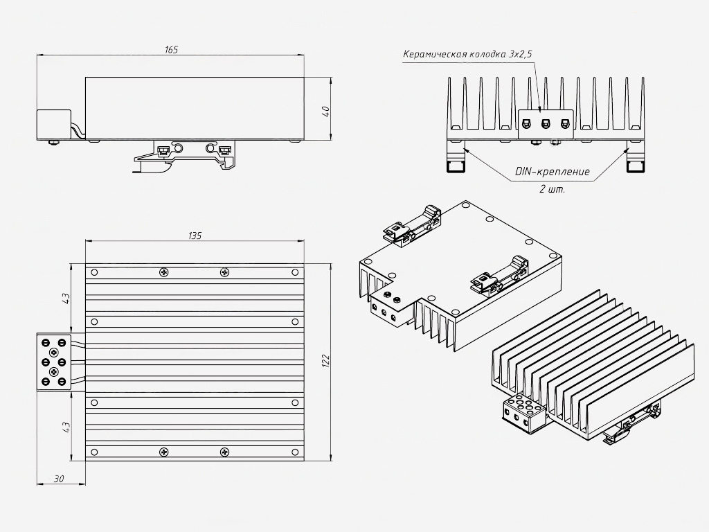 Модель обогревателя ОША-120 производится в стандартной комплектации с размерами радиатора 122х135х40 мм, мощностью 120 Вт, типом подключения - керамическая клеммная колодка.