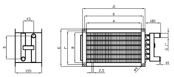 В качестве теплоносителя используется вода, циркулирующая внутри медных труб, передающая тепло воздуху через алюминиевые пластины-оребрения.