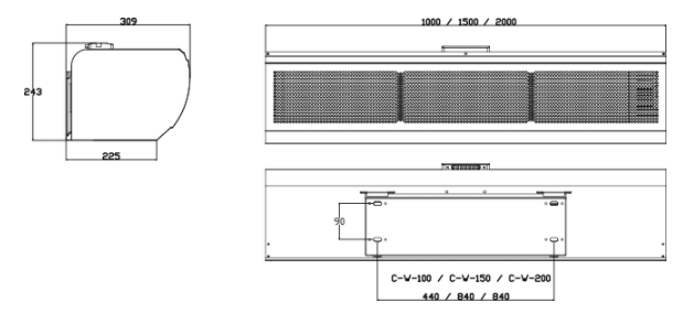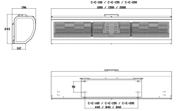 Воздушная завеса ELIS C 150 шириной 1,5 м – среднегабаритная модель в серии завес С, которая монтируется под потолком в помещениях высотой не более 3 м.