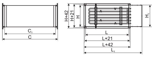 Электрические воздухонагреватели для прямоугольных каналов ЭНП