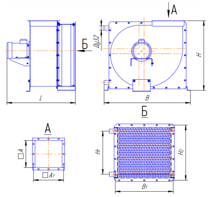 Габаритные размеры воздушно-тепловых установок ВТУ-М