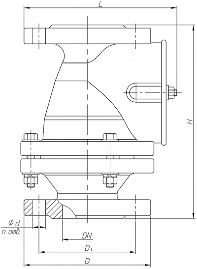 Нижний фланец клапана через прокладку устанавливается на монтажный патрубок резервуара, а к верхнему фланцу клапана присоединяется трубопровод газоуравнительной системы.