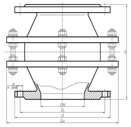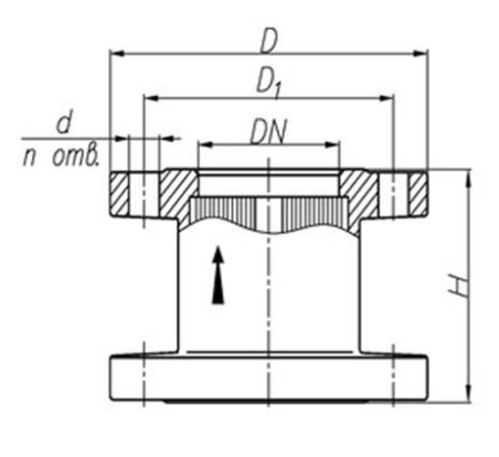 Обозначение | DN | Dн | Н | D | D1 | d | n | Масса, кг |