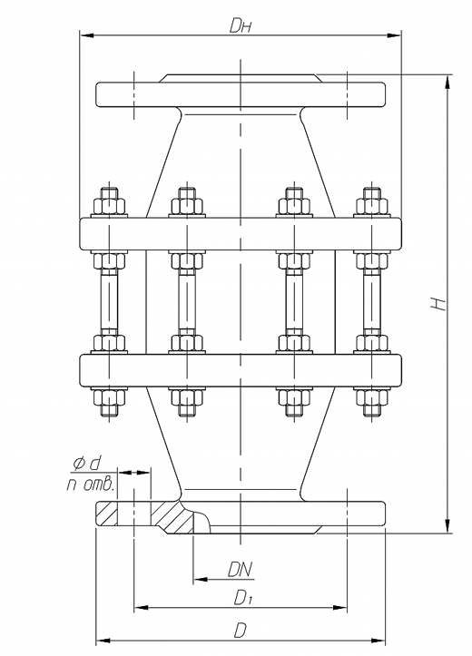 Соединительные фланцы изделия — по ГОСТ 12820-80, на условное давление (Ру) 40 кгс/см2. Присоединительные размеры фланцев соответствуют исполнению 1 по ГОСТ 12815-80.