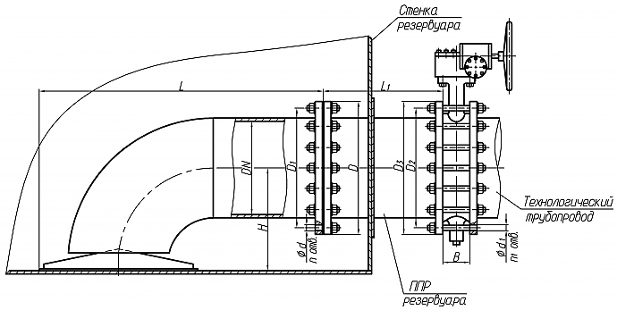 Приемо-раздаточные устройства монтируются в нижнем поясе стенки резервуара при помощи сварки (через усиливающую накладку) и крепежных изделий.
