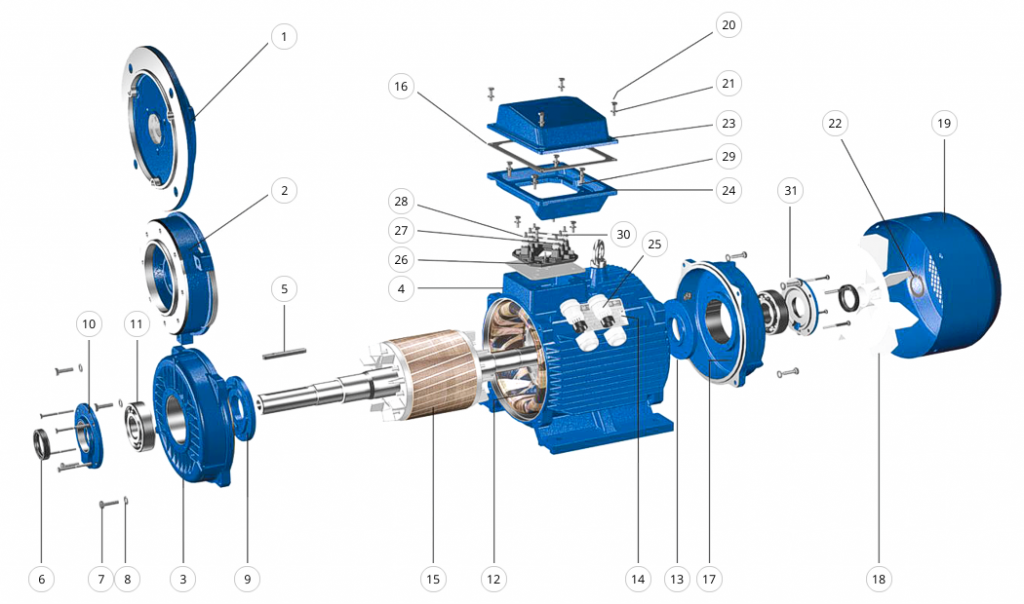 Конструктивная схема электродвигателей АИР
