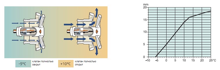 Саморегулирующийся воздушный клапан VTK оснащен термостатом, управляющим положением заслонки.