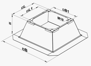 Рама совместима с вентиляторами серий ВКВ, ВКГ, ВКВ ЕС и ВКГ ЕС. Конструкция корпуса выполнена из оцинкованной стали, устойчива к коррозии и подготовлена для последующей герметизации непосредственно на объекте. Специальные фланцы в нижней части рамы упрощают и ускоряют её установку на кровле, обеспечивая надежную фиксацию.