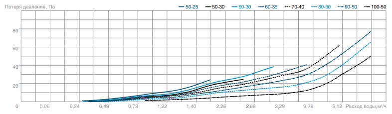 Типоразмер | Расход воздуха, м3/ч | Расход воды, м3/ч | Гидравлическое сопротивление, кПа | Теплопроизводительность, кВт |