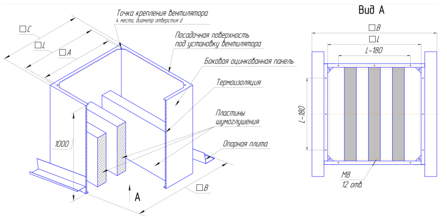 Внутри стенки короба покрыты термо-шумоизоляцией толщиной 10мм.