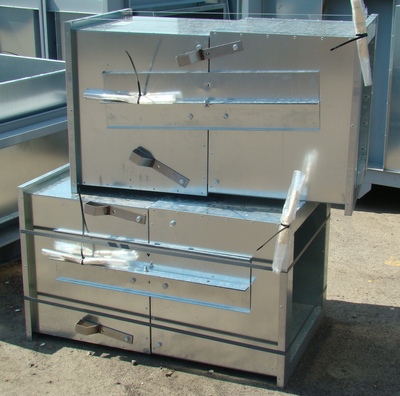Высота стакана СТАМ 400 – 600мм, рассчитана на толщину снегового покрова не более 500мм, с учетом толщины кровельного пирога. Стакан монтажный СТАМ 410 предназначены только для крепления на кровле с уклоном и поставляются с регулируемыми боковыми опорами. Угол уклона устанавливается при монтаже на кровлю, максимальный уклон – 1:2. Высота СТАМ410 – 750-1150мм., рассчитана на толщину снегового покрова более 500мм, с учетом изменяемого угла монтажа в кровлю. Присоединительные размеры СТАМ400(410) унифицированы с ДУ 400 (600) КРОС (КРОВ), ДУВ 400 (600) КРОС (КРОВ) и ВКОП0. К фланцам опорной плиты стакана монтажного СТАМ 400 (410) можно присоединять клапаны типа «КПУ-1Н», «ТЮЛЬПАН». При монтаже к СТАМ 400, 410 снизу клапана с электроприводом необходимо обеспечить доступ к приводу для его обслуживания.