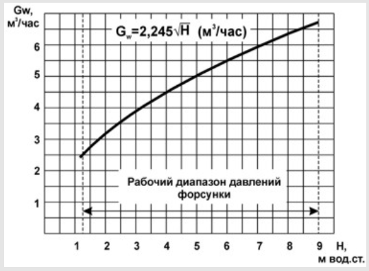 - Обеспечивают широкий диапазон регулирования расхода воды через форсунку: от 1,2 до 7 метров вод.ст. (от 0,12 до 0,7 Атм)