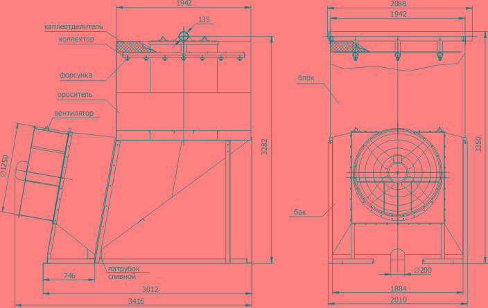 Градирни ГРАД-75 изготавливаются с корпусом из нержавеющей стали по одновентиляторной схеме с нижним расположением вентилятора.