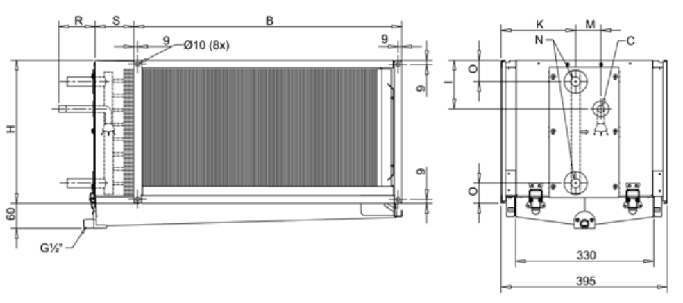 Воздухоохладители PGDX предназначены для монтажа в горизонтальных воздуховодах с произвольным направлением воздуха (поворотная батарейная вставка). Поставляется под давлением 2 бар.