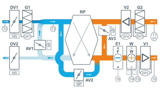 - EC-вентиляторы с функцией CAV (постоянный расход воздуха).