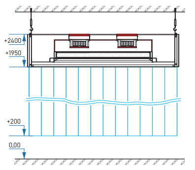 Модель LZ-T отличает позиция воздухозабора сверху поэтому при выборе оборудования необходимо учитывать мин. расстояние до уровень фальш-потолка 150 мм для обеспечения достаточного забора воздуха.