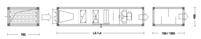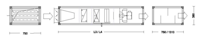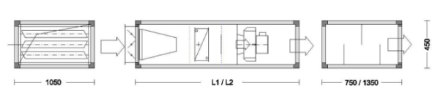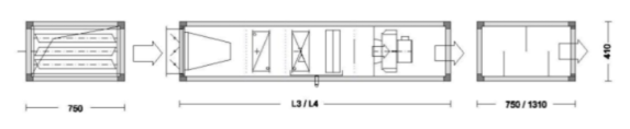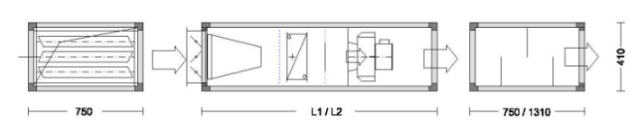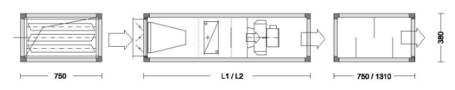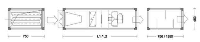 Секция шумоглушения L1 – 600 мм L2 – 900 мм L3 – 1400 мм | L1 | 750 | 750 | 750 | 750 |