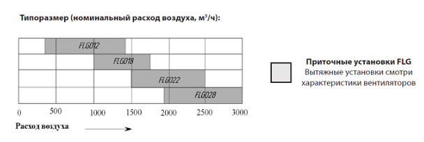 Установки FLG являются специализированными вариантами серии KLG и основаны на блочно-модульной конструкции. Они собираются из определённых типов секций четырёх типоразмеров: 012, 018, 022 и 028.