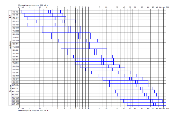 Рабочие диапазоны расходов воздуха