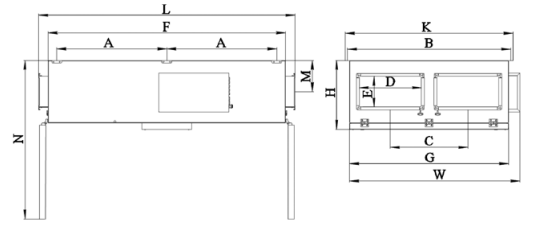 Корпус выполнен из листовой оцинкованной стали. Звуко-теплоизоляция корпуса толщиной 25 или 50 мм из базальтовой минеральной ваты.