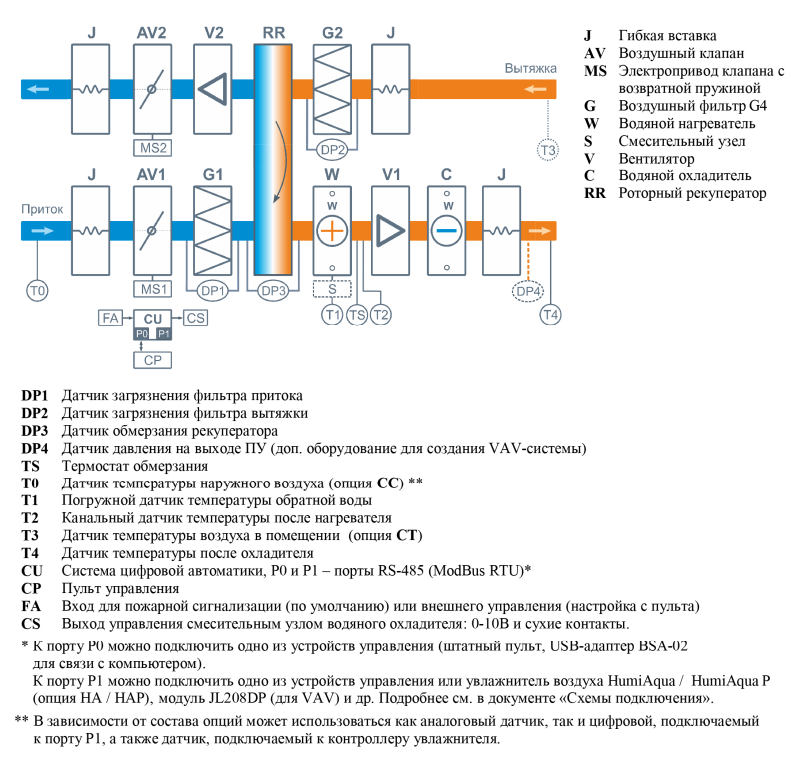 Комплектуется воздушными клапанами с электроприводом (с возвратной пружиной), системой цифровой автоматики JetLogic с цветным сенсорным пультом управления и всеми необходимыми датчиками.